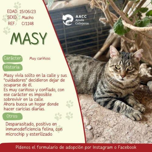 Historia: a Misa la adoptaron con 2 meses y la devolvieron a los 3 años porque se cambiaron de casa. Misa no se ha acoplado al resto de felinos y siempre está en tensión. Misa necesita una casa donde volver a confiar y estar relajada.